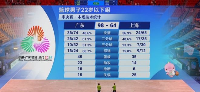 全场比赛,广东U22男篮轻松应对,以98比64大胜上海U22男篮34分,打进了决赛,他们的对手是逆转击败北京U22男篮的山东U22男篮。