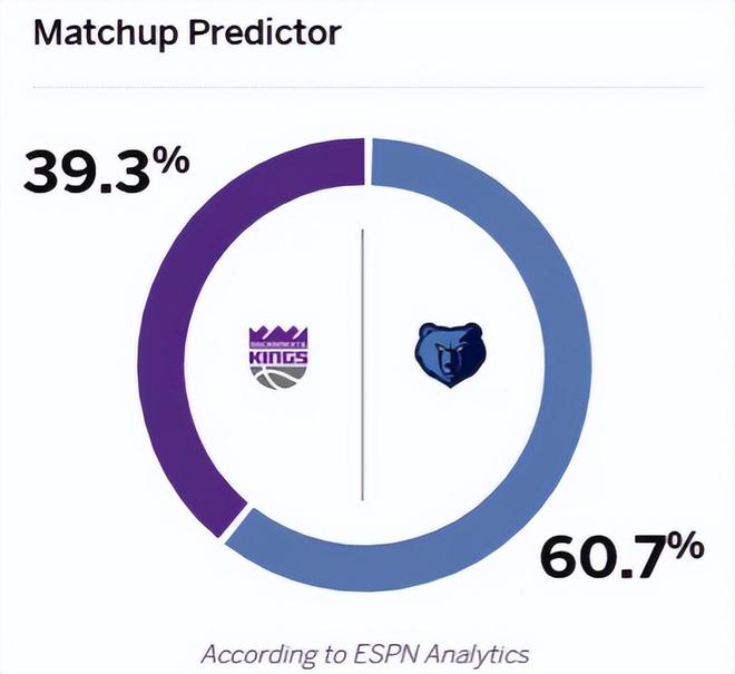 赛前,美媒ESPN对本场比赛进行了预测:灰熊胜率意外高达60.7% ,国王胜率则仅有39.3%,继续被看低。 首发阵容方面,灰熊队这边,莫兰特和小杰克逊继续缺战,排出的最新首发五人组为:韦尔斯、文斯-威廉姆斯、考沃德、阿尔达马、扎克-伊迪;国王队这边,首发阵容则为:威少、拉文、德罗赞、阿丘瓦、尤班克斯。