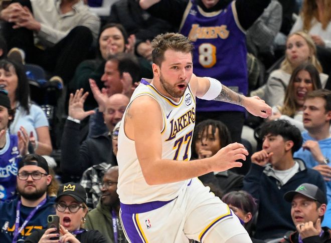 湖人连续获得罚球机会,东契奇撤步三分命中后,湖人领先13分。但此后爵士在马卡宁和乔治带领下顽强追上比分。最后1分钟,马卡宁的三分球追到只差1分,里夫斯三分打铁,马卡宁中投不中给机会,东契奇两罚中一,爵士有绝杀机会。最后6秒,爵士连续三分打铁,最终湖人108-106惊险击败爵士,迎来四连胜。