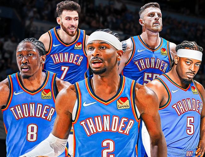 相比于战绩和排名,雷霆队展现的攻防统治力更让人害怕,多项攻防数据排在联盟前列,甚至是历史级别!据NBA官网数据统计,截至目前,雷霆队场均失分(105.6)、防守效率(102.9)、罚球命中率(84.5%)、对手失误数(18.3)、利用失误得分(24.8)和限制对手命中率(42.2%)均排在联盟第1位;抢断数(10.7)排在联盟第2位,场均得分(122.1分)排在联盟第3位,进攻效率(119.3)排在联盟第4位。在另外一项数据统计中,雷霆队新赛季场均净胜分高达+16.5,排在NBA历史第1位。