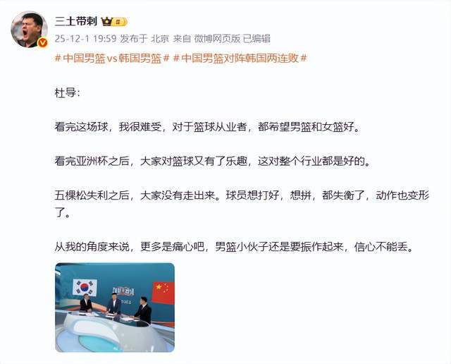 那么,中国男篮为何会在短短4天时间,遭到韩国男篮双杀呢?作为前中国男篮主帅,杜锋在直播点评时给出了自己的观点,他直言,“看完这场球,我很难受,对于篮球从业者,都希望男篮和女篮好。看完亚洲杯之后,大家对篮球又有了乐趣,这对整个行业都是好的。五棵松失利之后,大家没有走出来。球员想打好,想拼,都失衡了,动作也变形了。从我的角度来说,更多是痛心吧,男篮小伙子还是要振作起来,信心不能丢。”