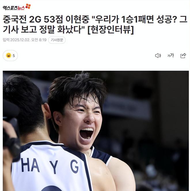 北京时间12月2日,韩国媒体《世博新闻》撰写长文,文中写道:韩国男篮自2013年后首次连胜中国男篮,李贤重回应了此前的质疑。