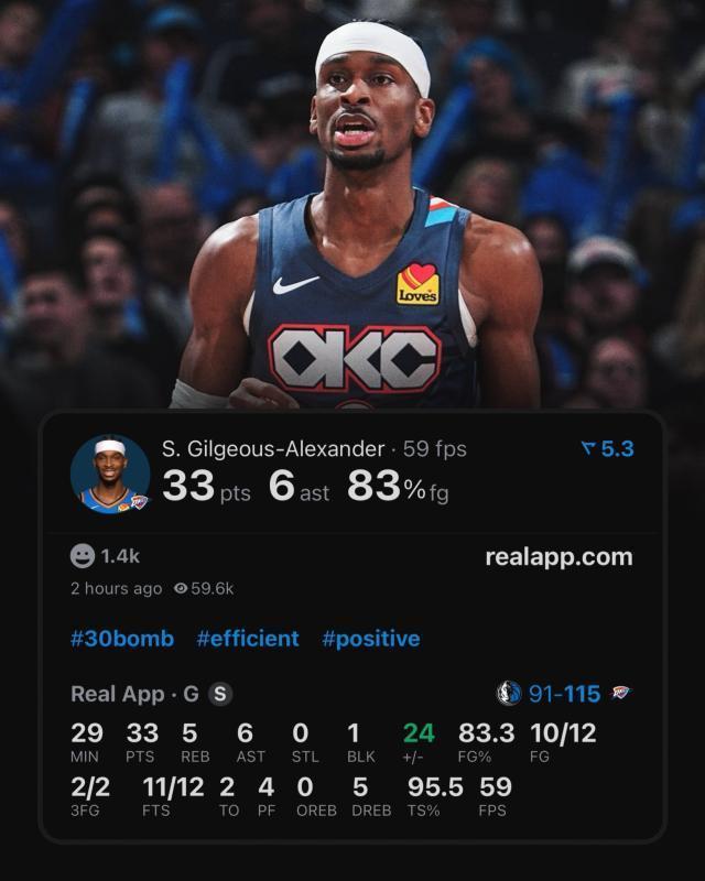 • 打第四节成奢望?雷霆22胜1负 SGA只打11个第四节