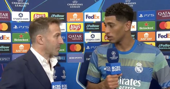 雷速体育10月23日讯 欧冠联赛阶段第三轮,皇马在主场以1-0的比分战胜尤文图斯。赛后,进攻功臣贝林厄姆接受了CBS的采访。