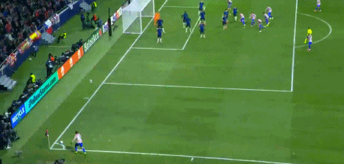 我跟科克说右侧的角球让格列兹曼来发。队友们都知道如果对手采用区域防守,那就很难防住我,因为我一旦全速冲上来,站在原地的防守球员是难顶住我的弹跳的,这是我的优势之一。我让格列兹曼把球吊得高一点,我喜欢这种球,而我要做的只是用头顶一下。