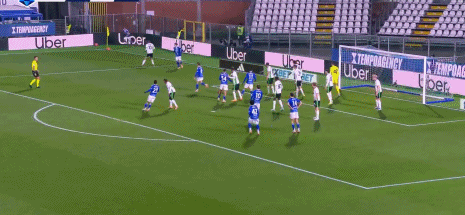 第15分钟,主队开出战术角球造成混乱,杜维卡斯倒地破门,科莫1-0