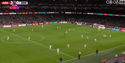 第11分钟,本-怀特送出传中,梅里诺头球破门!阿森纳1-0布伦特福德