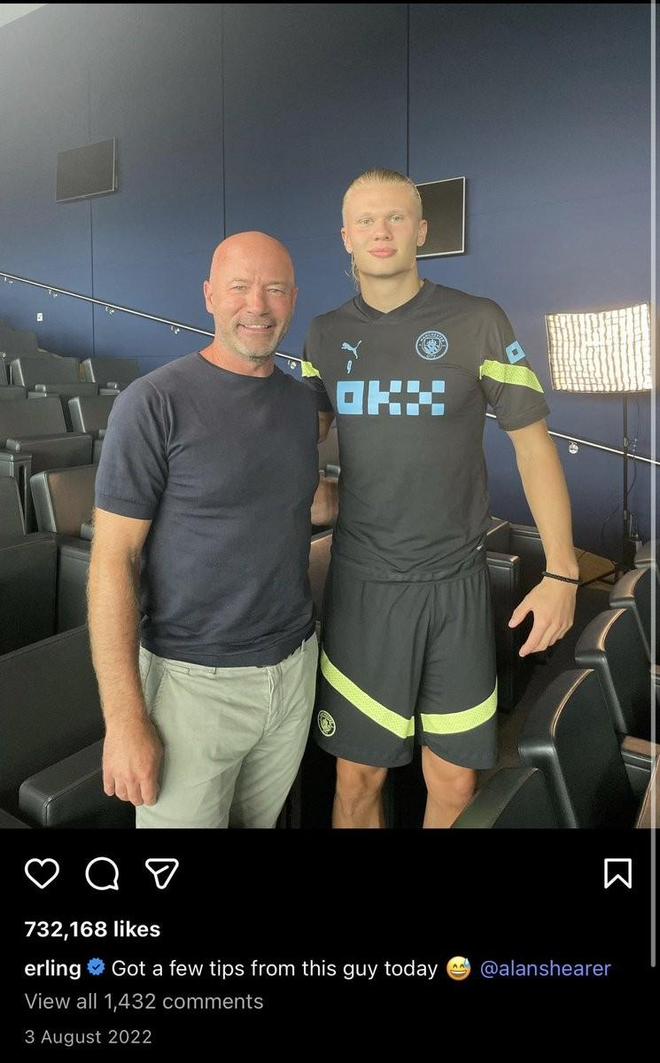 哈兰德转发并晒出了他在2022年夏天刚登陆英超时与阿兰-希勒的合影,当时的配文是“今天从这个家伙那里获得了一些建议”。